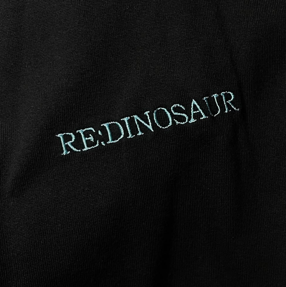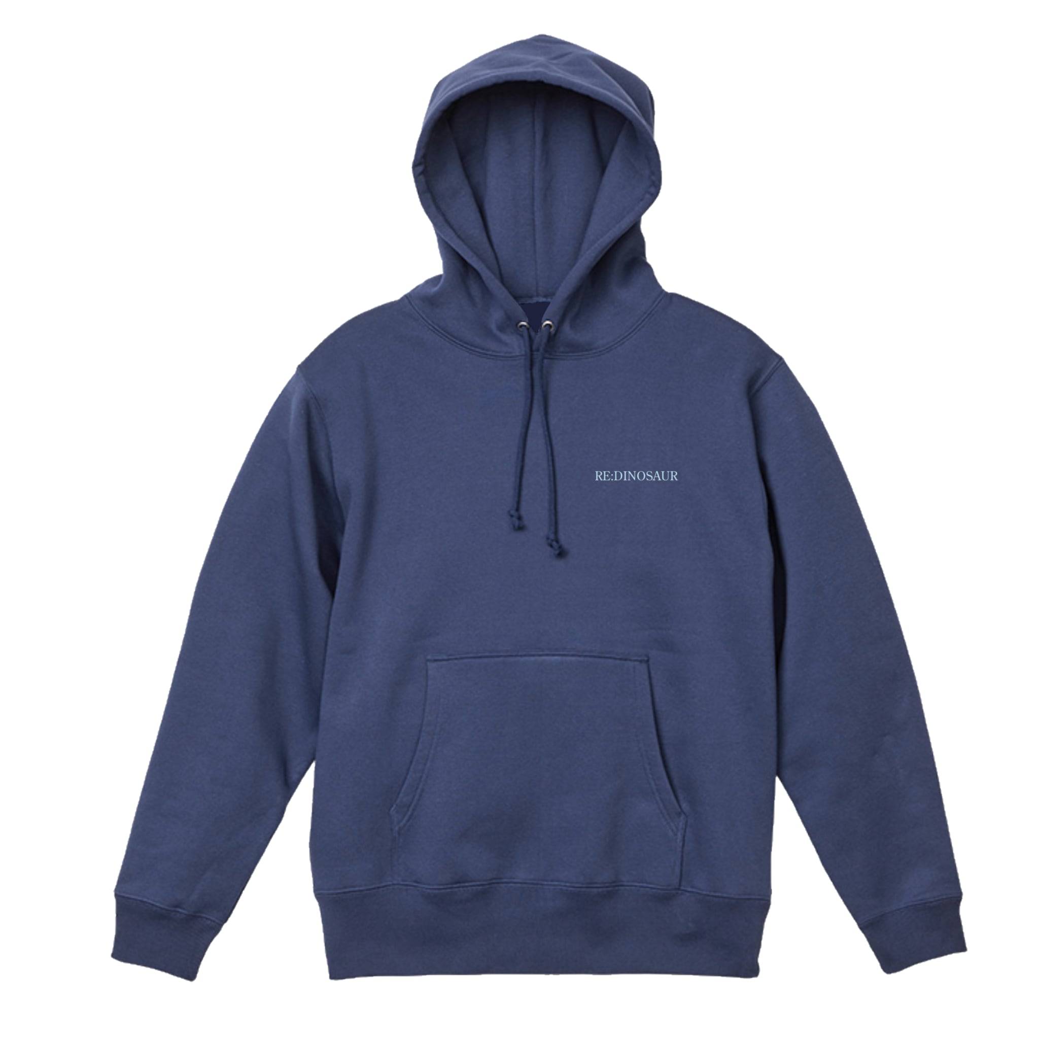 前面にロゴの刺繍、背面に一筆書きのスピノサウルスがプリントされたパーカー。