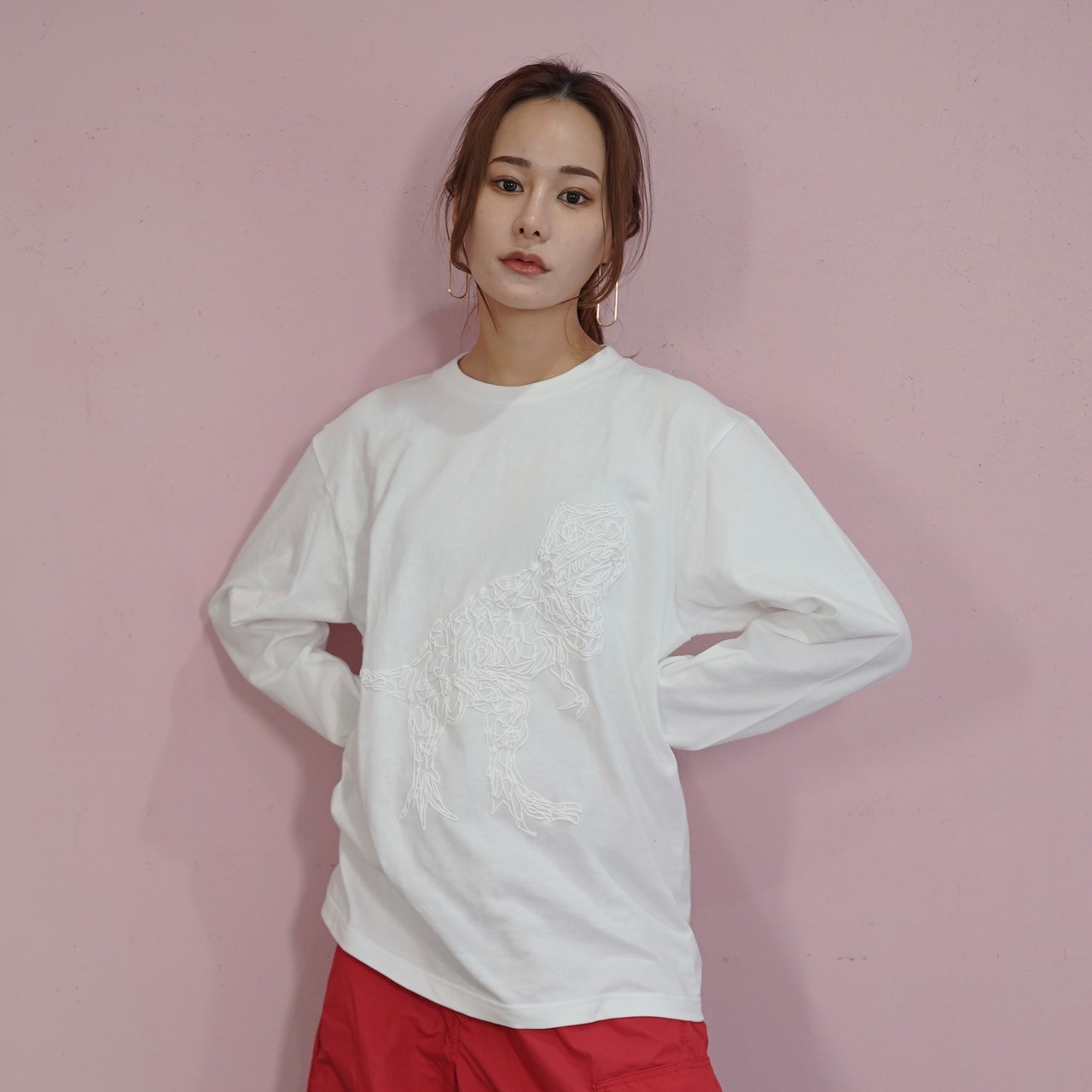 Long sleeve T-shirt with 3D"compREX",one-line drawing T-REX.