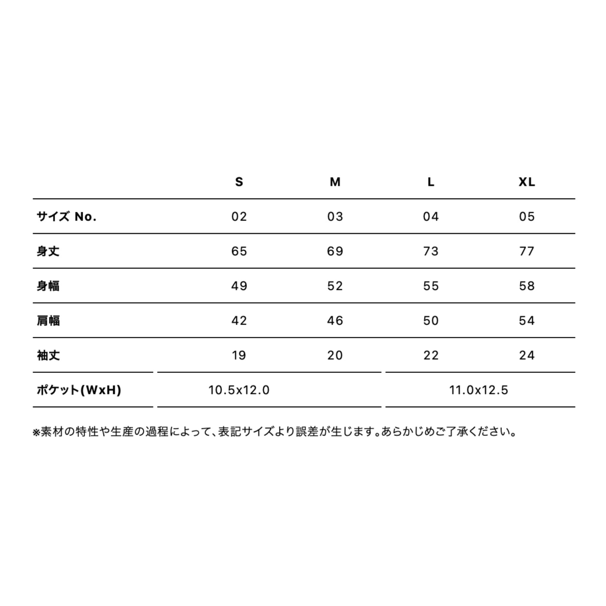 【M】 着丈:69 肩幅:46 身幅:52 袖丈:20